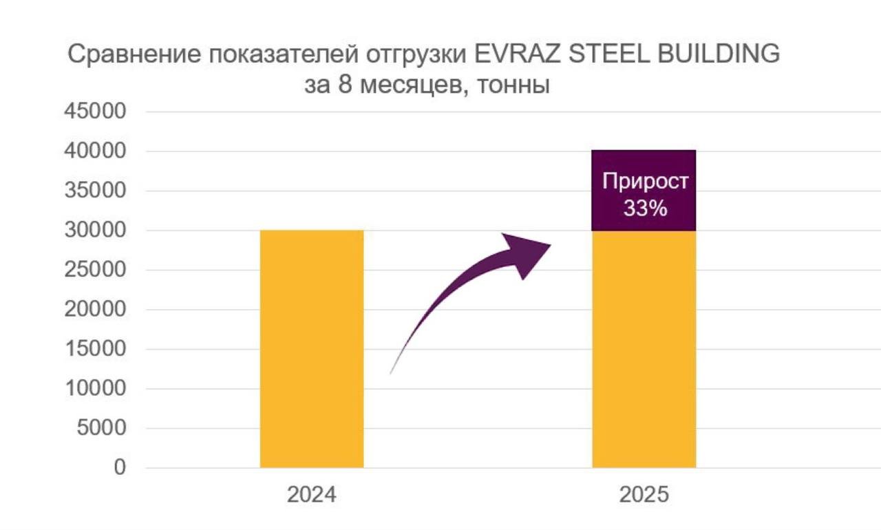 EVRAZ STEEL BUILDING продолжает своё уверенное развитие. С начала года мы поставили 40 тыс. тонн металлоконструкций — это на 33% больше, чем за аналогичный период 2024-го.